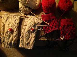 There are times that when I knit my mind is racing and thinking about the next project that I will be knitting and there are times that I knit a pattern I have before and get a little dulled by the sameness of the knitting. So that happened the other day when I started my 32nd pair of Scrunch Socks!!!!!!! I do love knitting these socks but there are those times that I need something to get my mind going and so decided to knit two different pairs of sock at the same time. Interesting as I am loving the switching from one to the other. My progress is great and my mind is joyful...not bored! I am knitting a pair of Scrunch Socks and also a Criss Cross Intarsia pair of socks for a medium man size in red and black ....very retro I think.